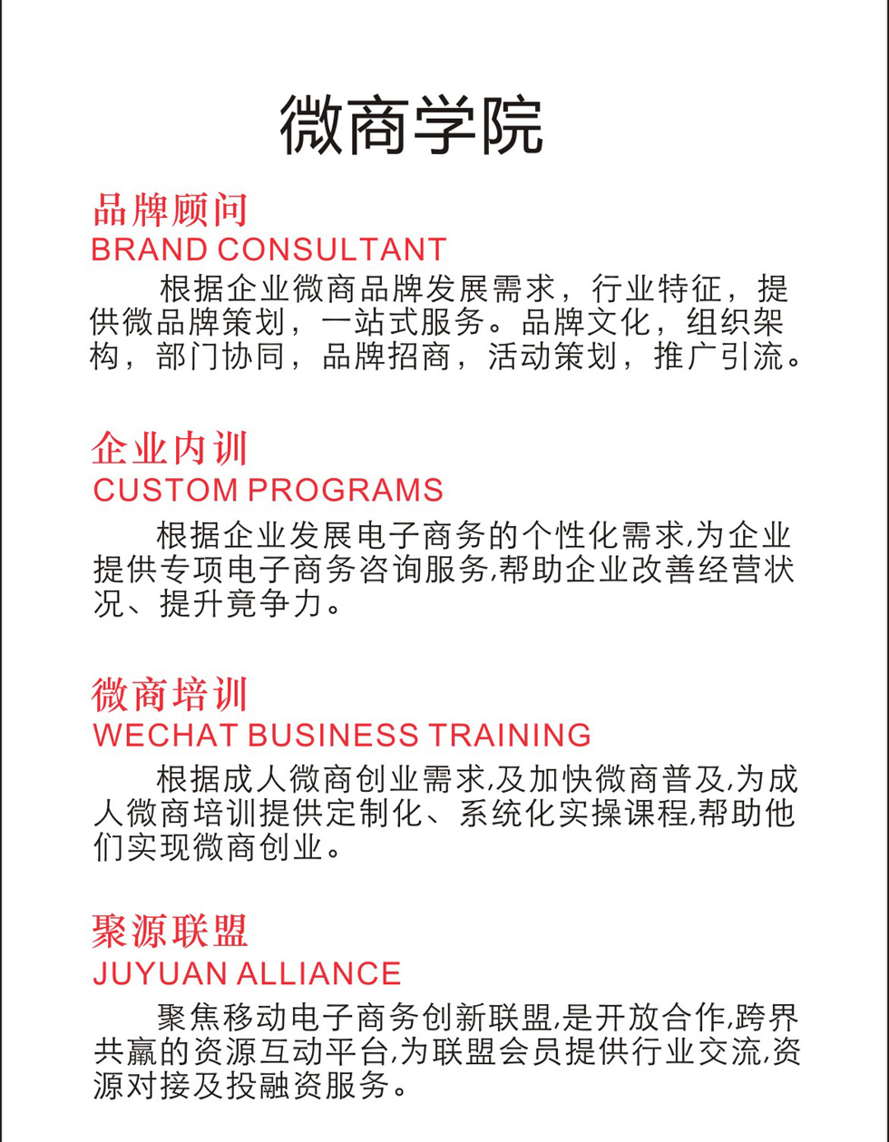 品牌顾问,企业内训,微商培训,聚源联盟。