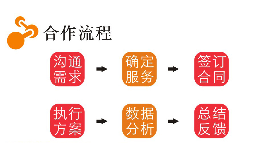 沟通需求 确定服务 签订合同 执行方案 数据分析 总结反馈